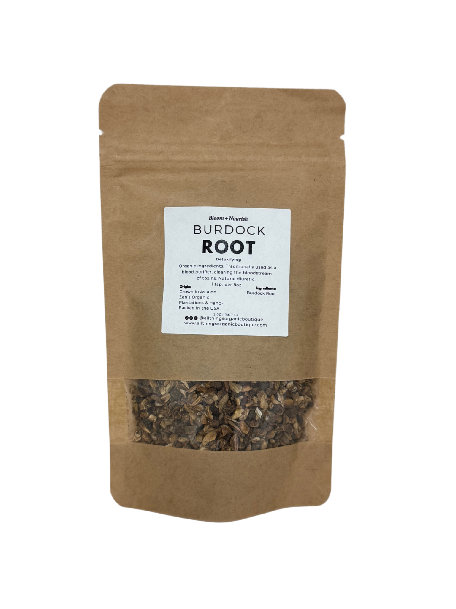 Traditionally, this root tea has been used as a blood purifier, clearing the bloodstream of toxins. Burdock root is treasured as a natural diuretic, helping to expel excess water from the body by naturally increasing the flow of urine output. This root can be consumed with other detoxifying herbs to increase the benefits.